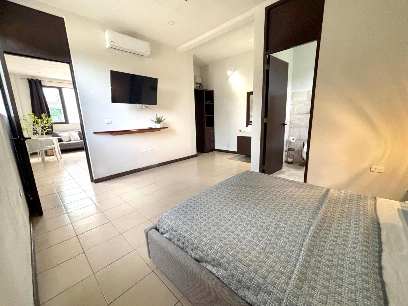 Comfortable Living Space: Moro Apartments - Near the beach in CancĂșn offers a one-bedroom apartment with a living room. The ground-floor unit features a terrace with garden views, air-conditioning, and a fully equipped kitchen.